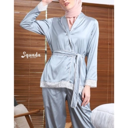 --Tali pinggang terpisah Variasi lace cantik di ujung tangan dan celana Celana model semi kulot-