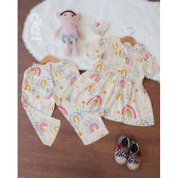 S (1-2 thn) : Lingkar Dada 56 cm/ Panjang Baju 45 cm/ Panjang Celana 43 cm/ Lingkar Pinggang 58 cm