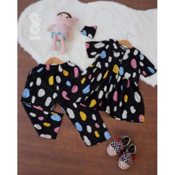 L (5-6 thn) : Lingkar Dada 76 cm/ Panjang Baju 57 cm/ Panjang Celana 65 cm/ Lingkar Pinggang 70 cm