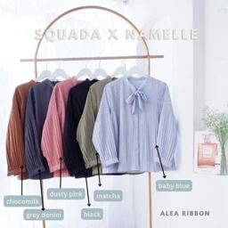 SQUADA X NAMELLE | ALEA BLOUSE RIBBON BLOUSE VINTAGE ATASAN WANITA PLISKET PREMIUM BLOUSE KOREA BAJU WANITA KEKINIAN